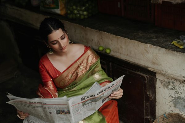 Handwoven Kanchipuram sarees have the body and border woven separately and then attached. A slight joint between the two indicates authenticity.
