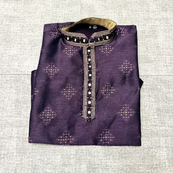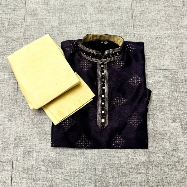 Elevate your kid’s style with our Dark purple color Kurta set. Complete with a comfortable pajama, it’s the perfect ensemble for any occasion.